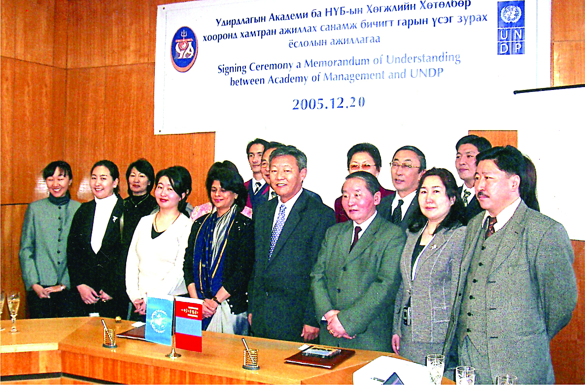 НҮБ-ын хөгжлийн хөтөлбөртэй Удирдлагын академи нягт хамтран ажиллаж, төсөл хөтөлбөр хэрэгжүүлдэг