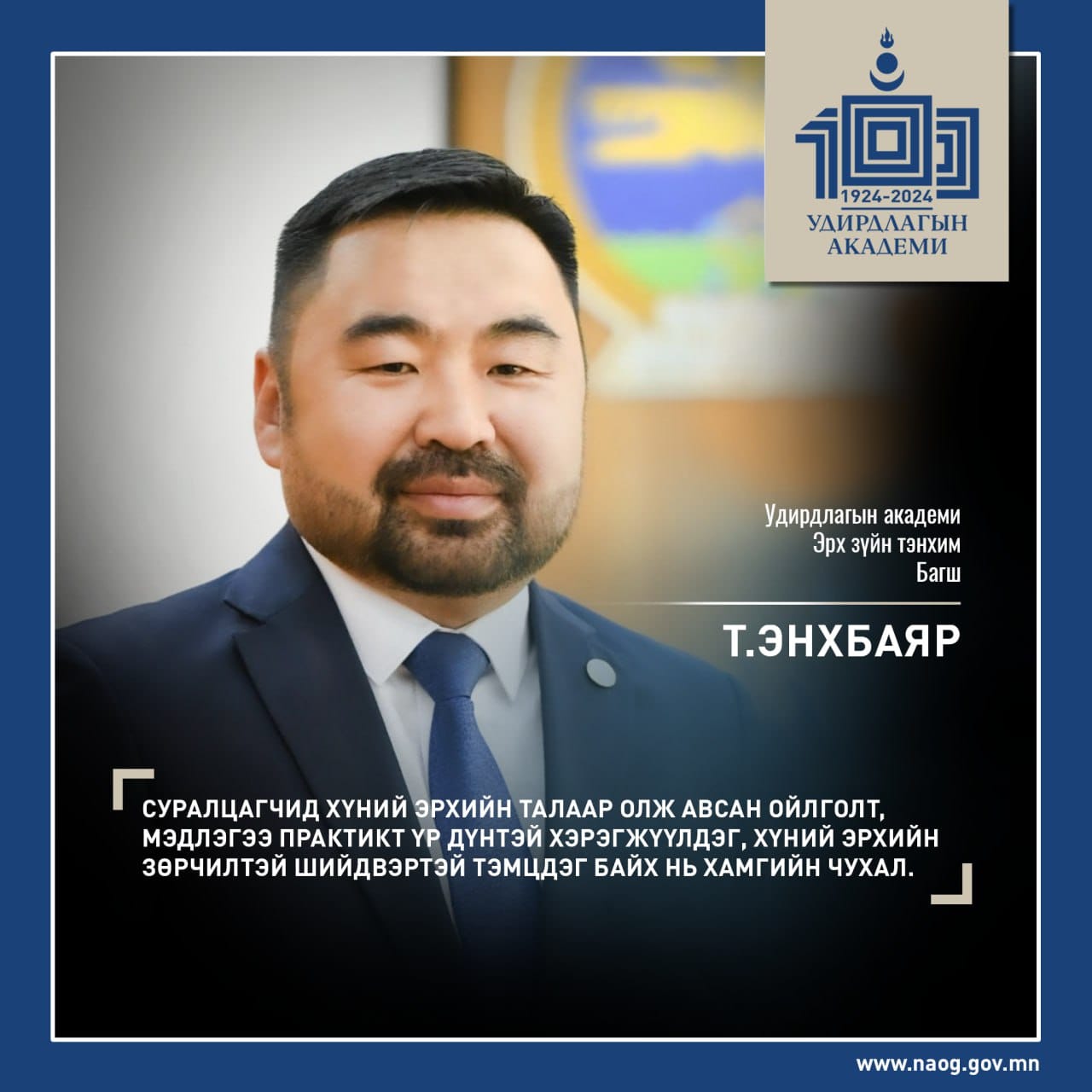 - Удирдлагын академийн Эрх зүйн тэнхимийн багш Т.Энхбаяр