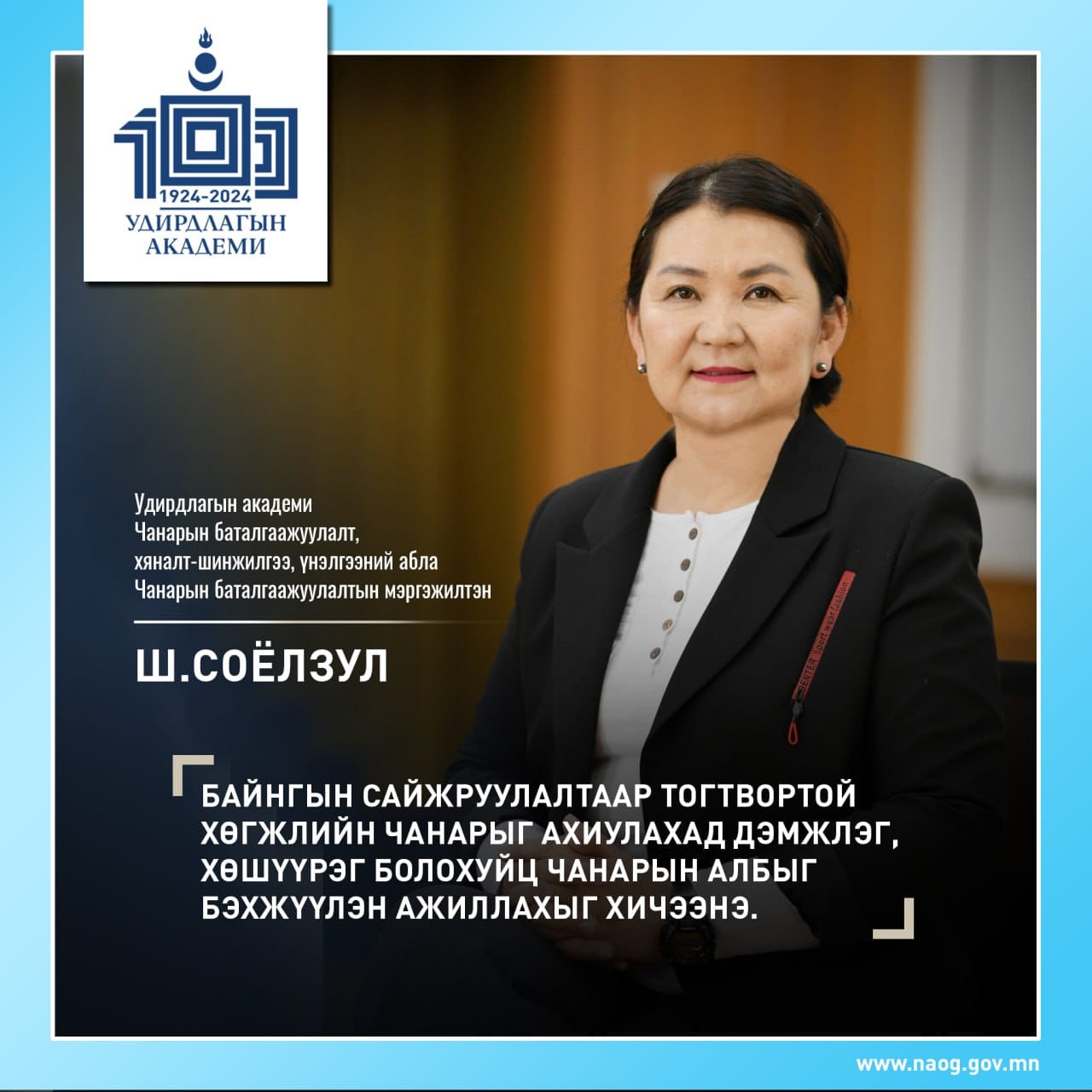 Удирдлдагын академийн Чанарын баталгаажуулалтын мэргэжилтэн Ш.Соёлзул