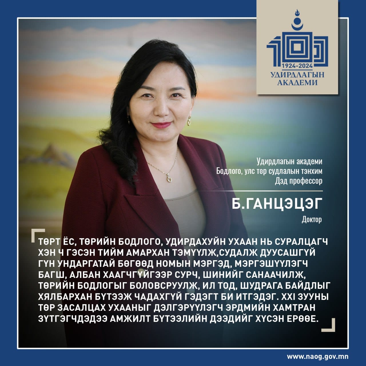Удирдлагын академи Бодлого, улс төр судлалын тэнхим Дэд профессор Б.Ганцэцэг