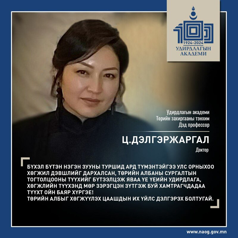 - Удирдлагын академи Төрийн захиргааны тэнхим Дэд профессор Ц.Дэлгэржаргал