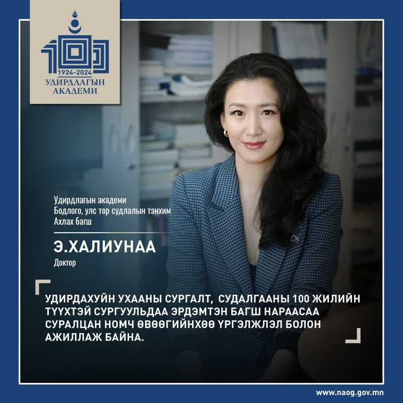 - Удирдлагын академи Бодлого, улс төр судлалын тэнхим Ахлах багш Э.Халиунаа