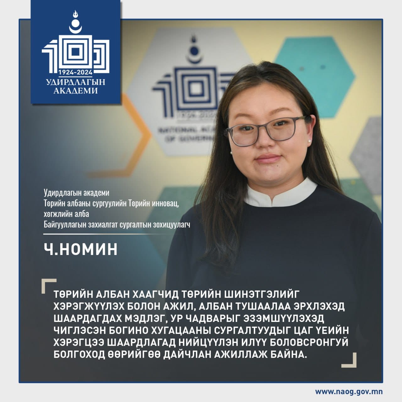 Удирдлагын академи Төрийн албаны сургуулийн Төрийн инновац хөгжлийн алба Байгууллагын захиалгат сургалтын зохицуулагч Ч.Номин