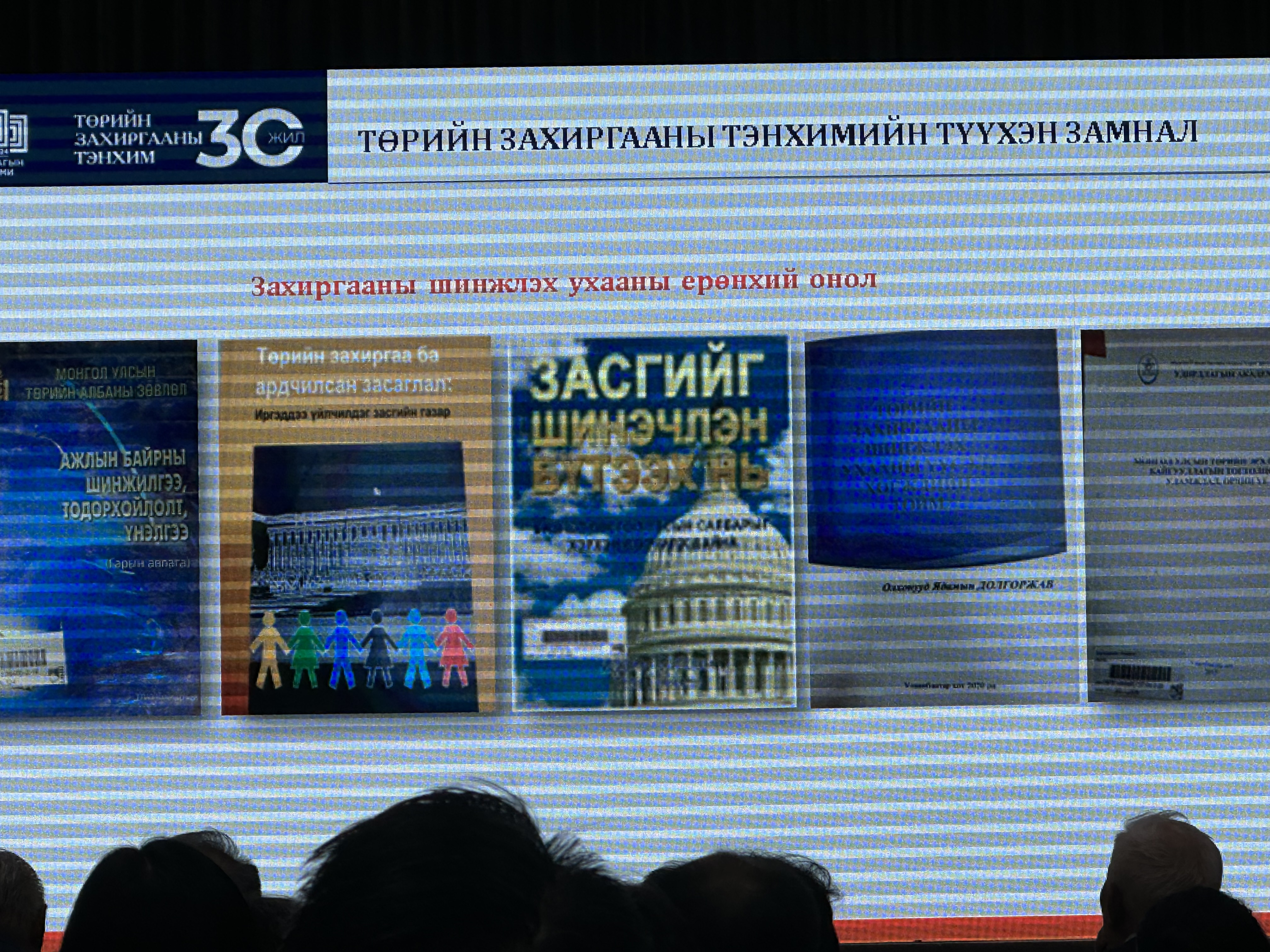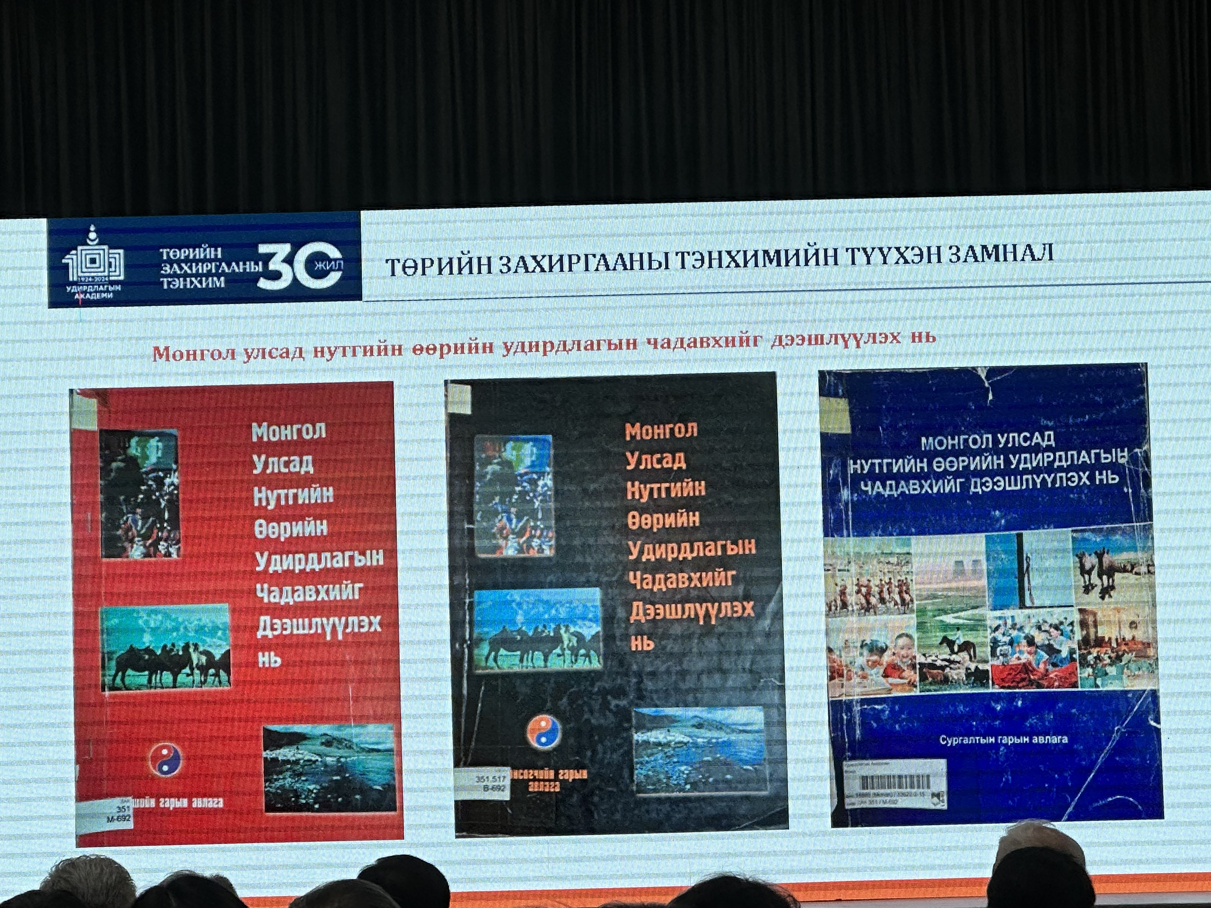 - Монгол Улсад Төрийн захиргааны ууган тэнхим байгуулагдсаны 30 жилийн ойд зориулсан Эрдэм шинжилгээний хурлын үеэр