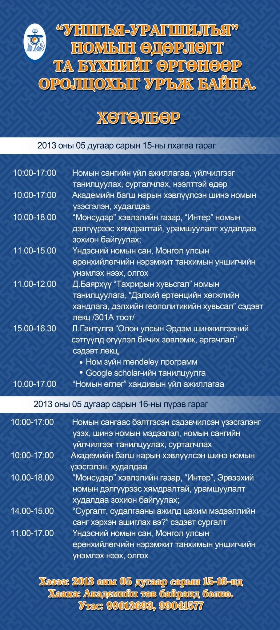 - Номын өдөрлөгийн хөтөлбөр, баннер 2013 он