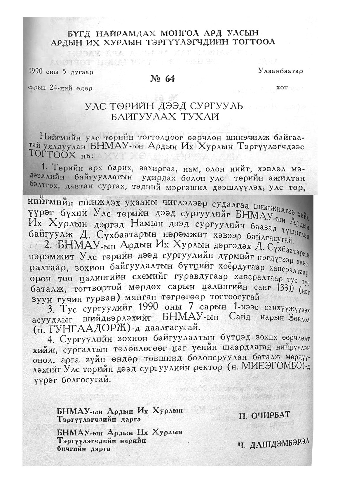 - Бүгд Найрамдах Монгол Ард Улсын Ардын их хурлын тэргүүлэгчдийн тогтоол, дугаар 64