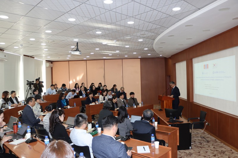 Уулзалтын 2 дахь өдөр Удирдлагын академийн багш, ажилтан, докторантууд болон төрийн захиргааны байгууллагуудын албан хаагчдад “БНСУ-Монголын хамтын ажиллагаа” сэдвээр БНСУ-ын Төрийн захиргааны институтийн ерөнхийлөгч, доктор Чой Санг Хан, “Засгийн газрын гүйцэтгэлийн үнэлгээ: БНСУ-ын бодлогын үйл явц (Төлөвлөлтөөс үнэлгээ хүртэл)” сэдвээр зочин судлаач, доктор И Рюнь Жү, “БНСУ-ын зохицуулалтын инноваци” сэдвээр доктор Хун Сюн Хунь нар илтгэл хэлэлцүүлж байна.