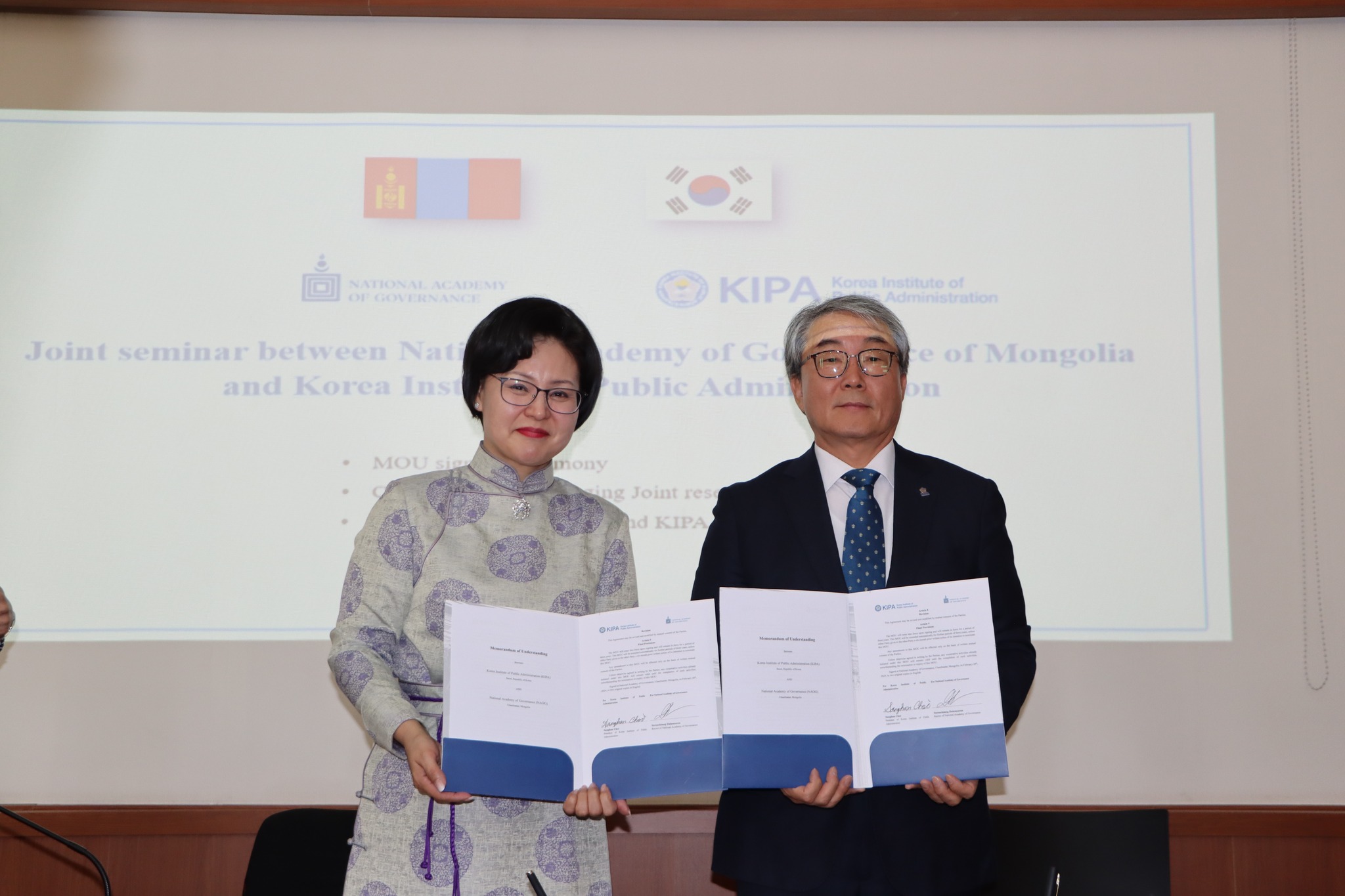 Мөн Удирдлагын академи, БНСУ-ын Төрийн захиргааны институт хоорондын хамтын ажиллагааны санамж бичигт Удирдлагын академийн захирал, дэд профессор Д.Сүрэнчимэг, БНСУ-ын Төрийн захиргааны институтийн ерөнхийлөгч, доктор Чой Санг Хан нар гарын үсэг зурав.