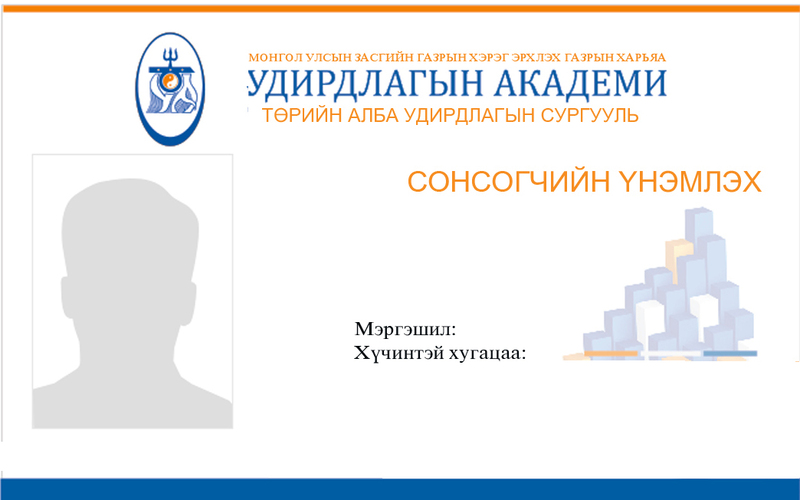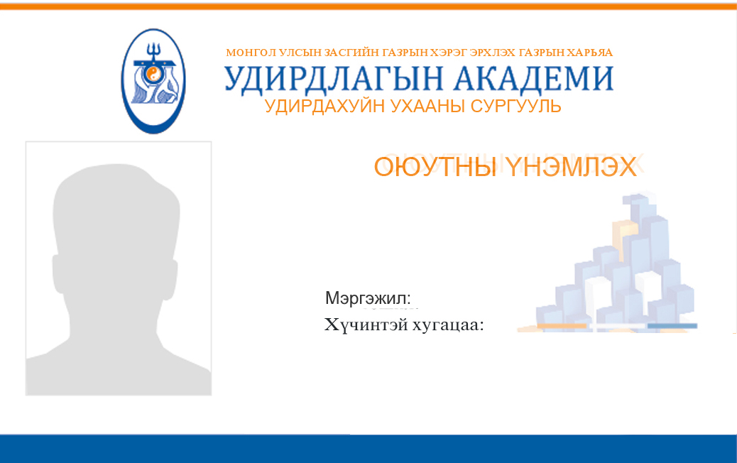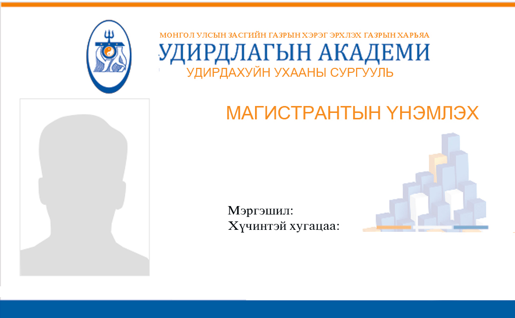 - ЗГХА Удирдлагын академийн багш, ажилтан, суралцагчдад олгож байсан үнэмлэхний загвар