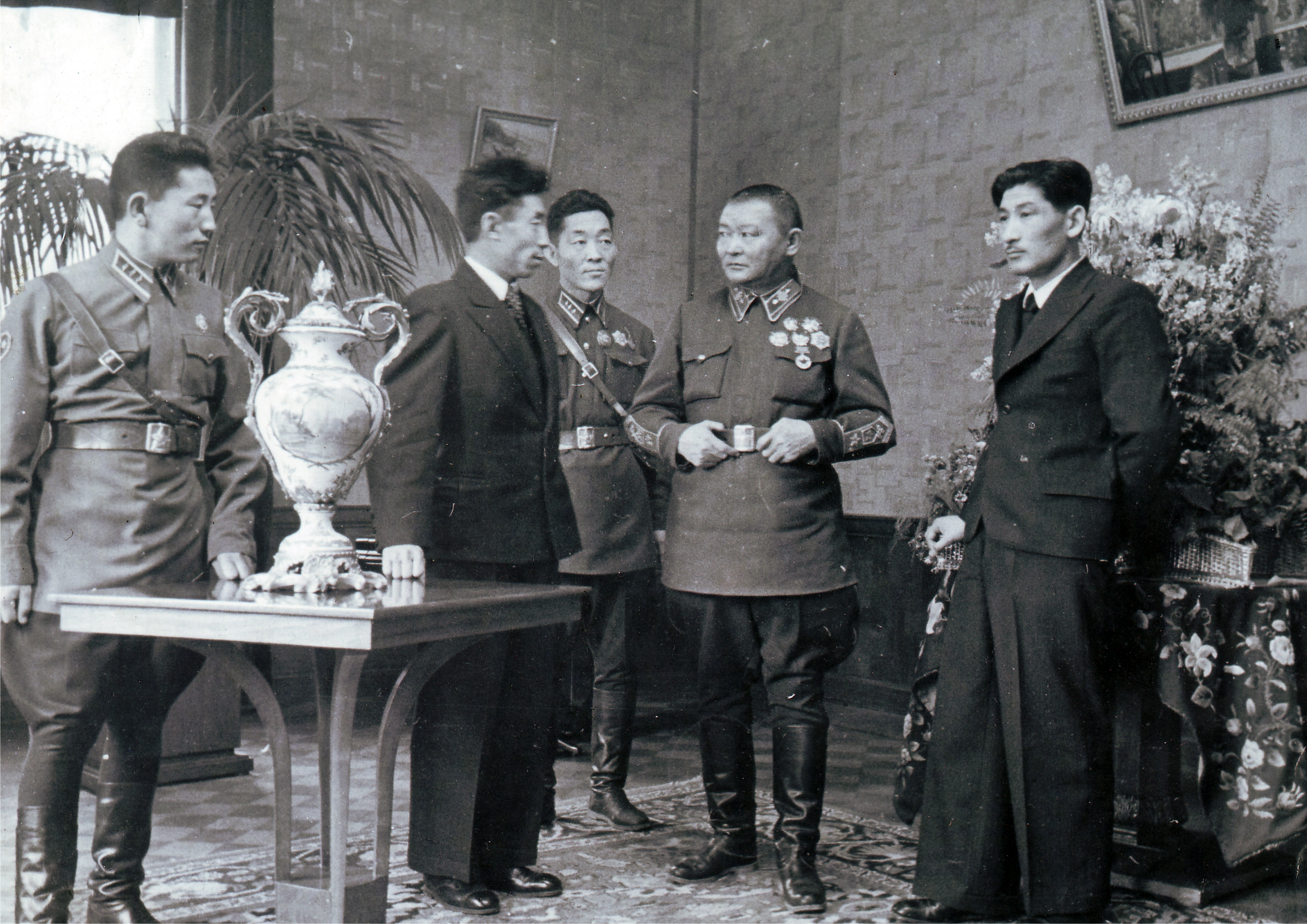 - Х.Чойбалсан албан тасалгаанд, зүүн гараас Шомбонз хэмээх Бат-Очир, Комиссар