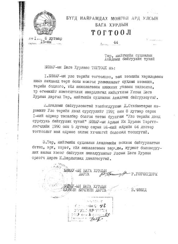 Items with "Холбоотой баримт: Төр, нийгмийн судлалын академи"