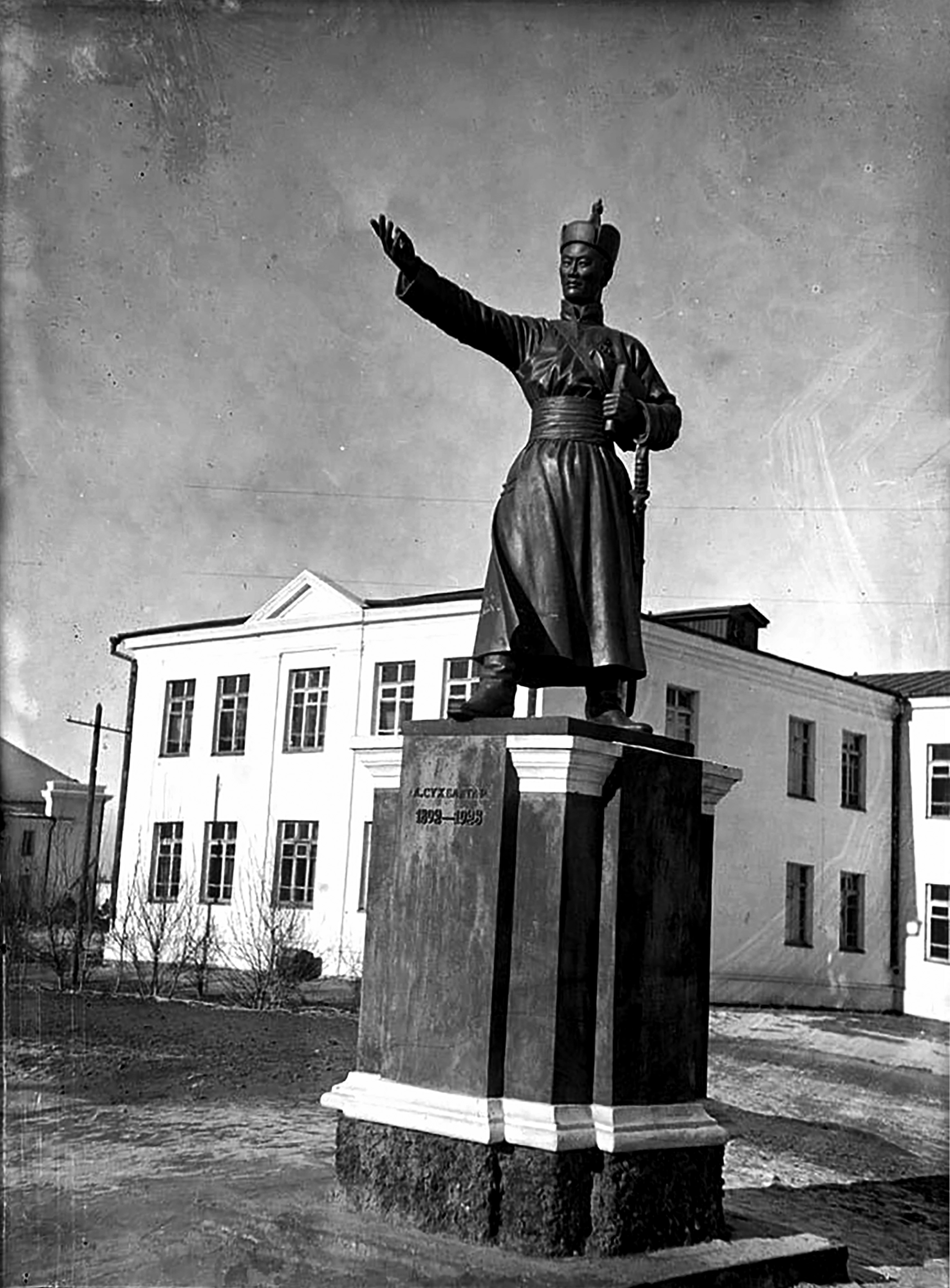 - Намын Шинэ хүчний дээд сургуулийг 1943 оноос Д.Сүхбаатарын нэрэмжит болгон энэхүү хөшөөг 1944 онд босгожээ