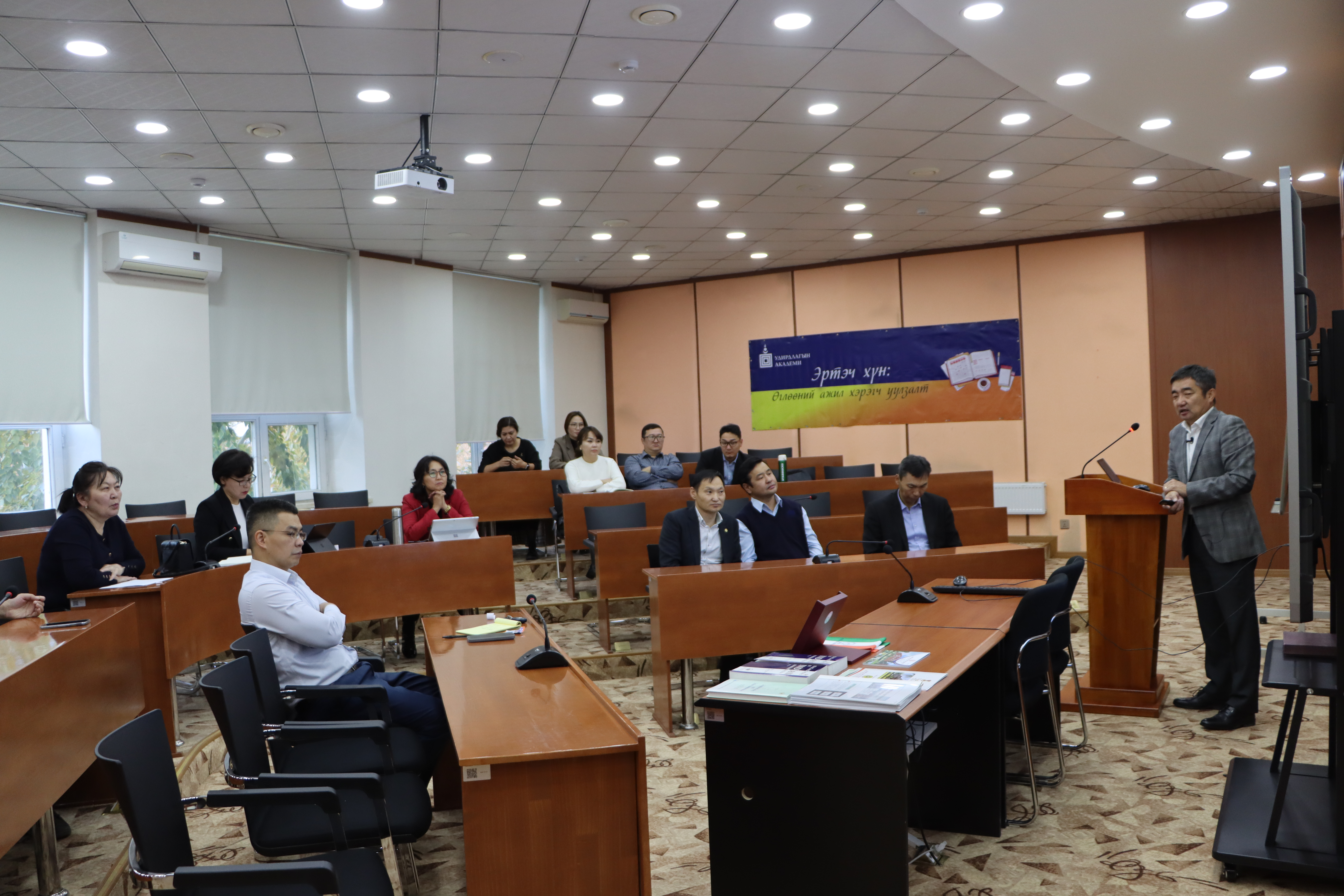 - “Эртэч хүн” өглөөний ажил хэрэгч уулзалт боллоо. Энэ удаагийн зочноор Төрийн албаны сургуулийн захирал Д.Байгал ахлагтай баг оролцов.