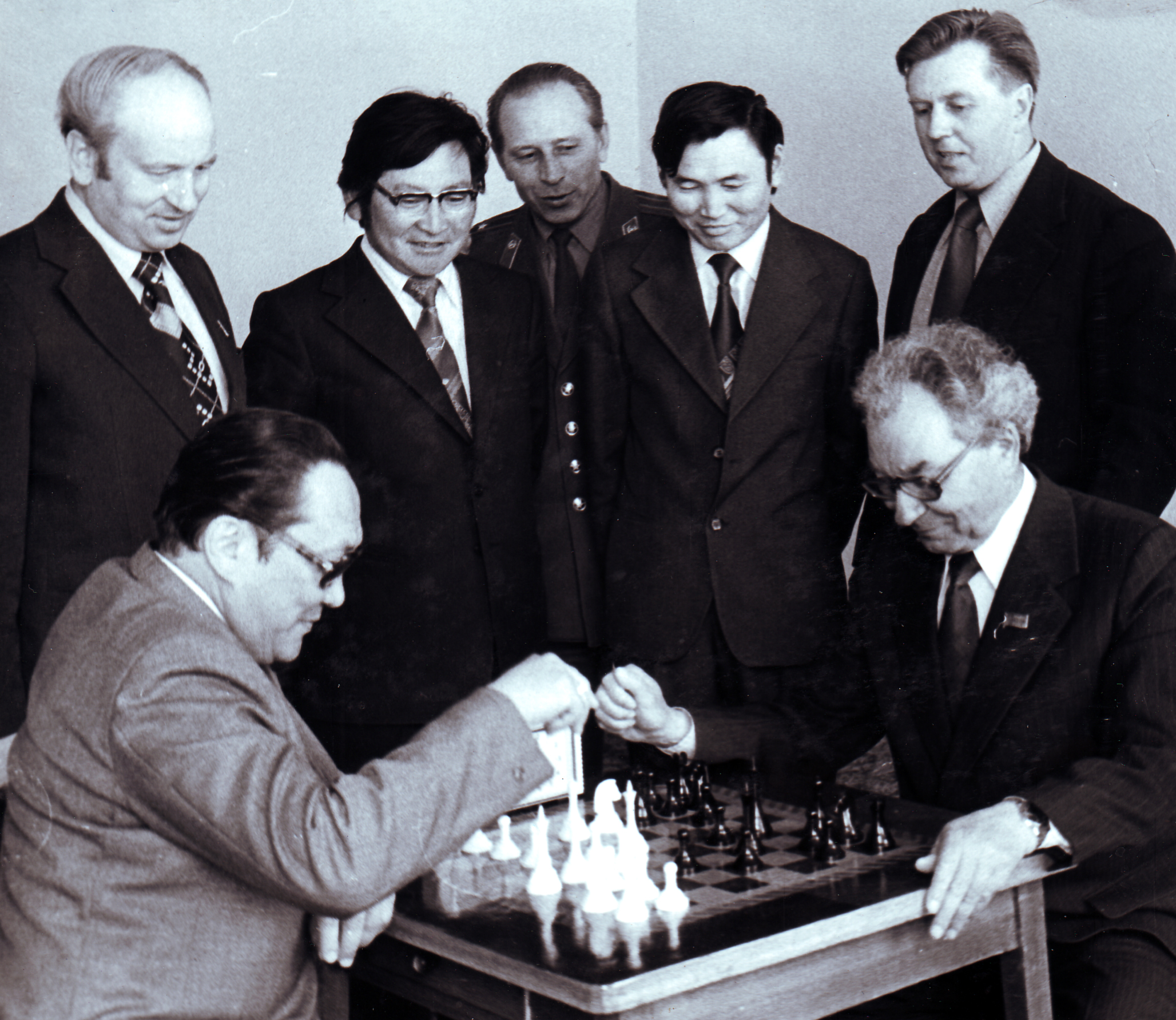 - Намын дээд сургуулийн захирал Г.Миеэгомбо, дэд захирал Б.Даш-Ёндон, багш Шааман нар Зөвлөлтийн төлөөлөгчдийн хамт