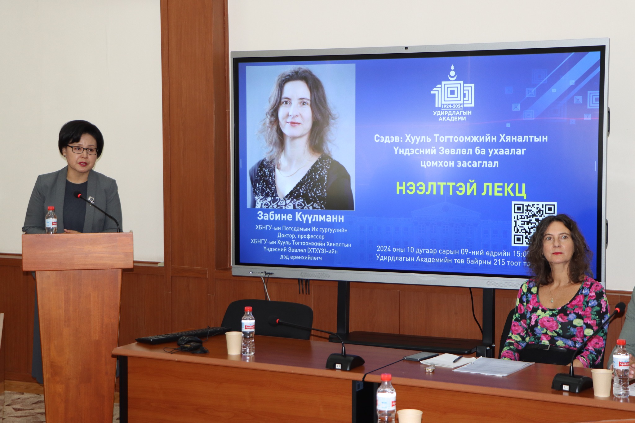 - ХБНГУ-ын Потсдамын их сургуулийн профессор Забинэ Күүлманн “Хууль тогтоомжийн хяналтын үндэсний зөвлөл ба ухаалаг цомхон засаглал” сэдвээр нээлттэй лекц уншлаа