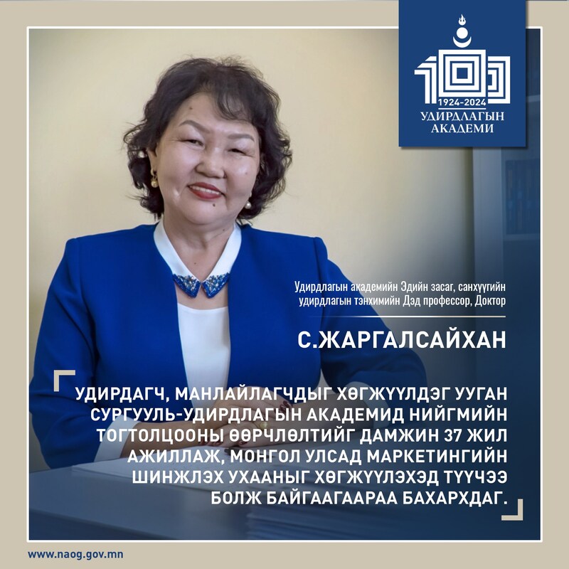 - Удирдлагын академийн Эдийн засаг, санхүүгийн удирдлагын тэнхимийн дэд профессор С.Жаргалсайхан