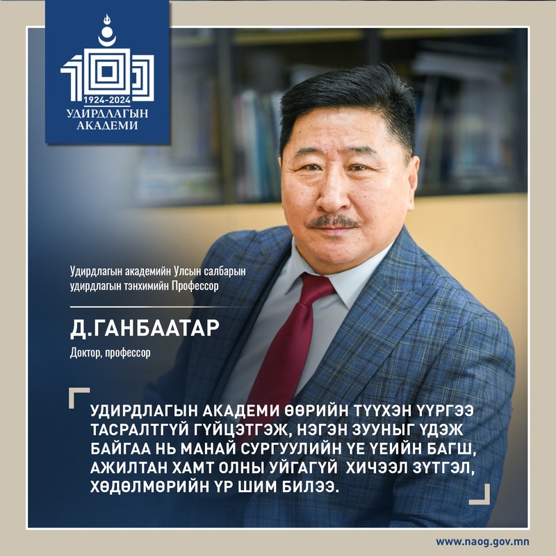 - Удирдлагын академийн Улсын салбарын удирдлагын тэнхимийн Профессор Д.Ганбаатар