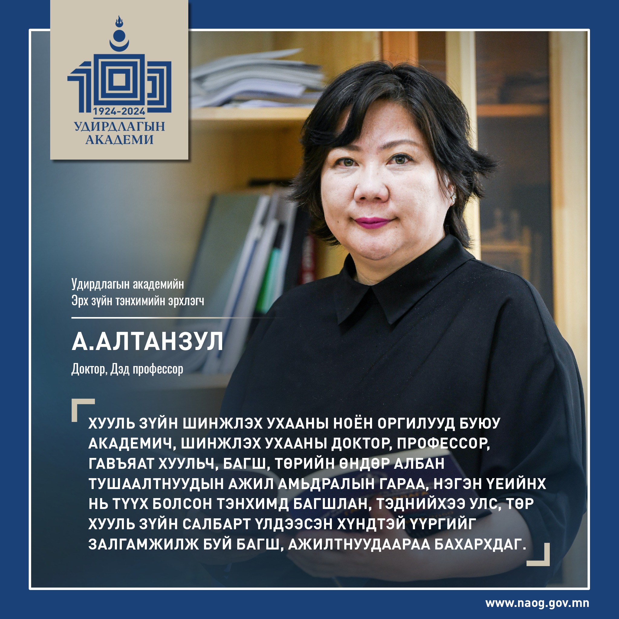 - Удирдлагын академийн Эрх зүйн тэнхимийн эрхлэгч, Доктор, дэд профессор А.Алтанзул