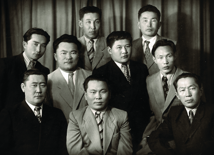 ЗХУКН-ын Төв хорооны дэргэдэх Намын дээд сургуулийн аспирантур, докторантурт сурч байсан НДС-ийн багш нар Өвөр эгнээнд: (Зүүнээс) Ц.Доржбат, Б.Лигүү, Н.Цэдэнжав, Дунд эгнээнд: Ц.Готов, Б.Хурметбек, Р.Нансал, С.Авармэд, Ар эгнээнд: Д.Галсанпунцаг, Б.Равсал